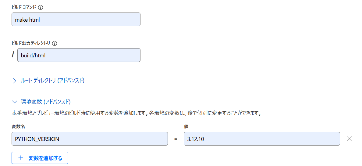 環境変数:PYTHON_VESION = <Python のバージョン>